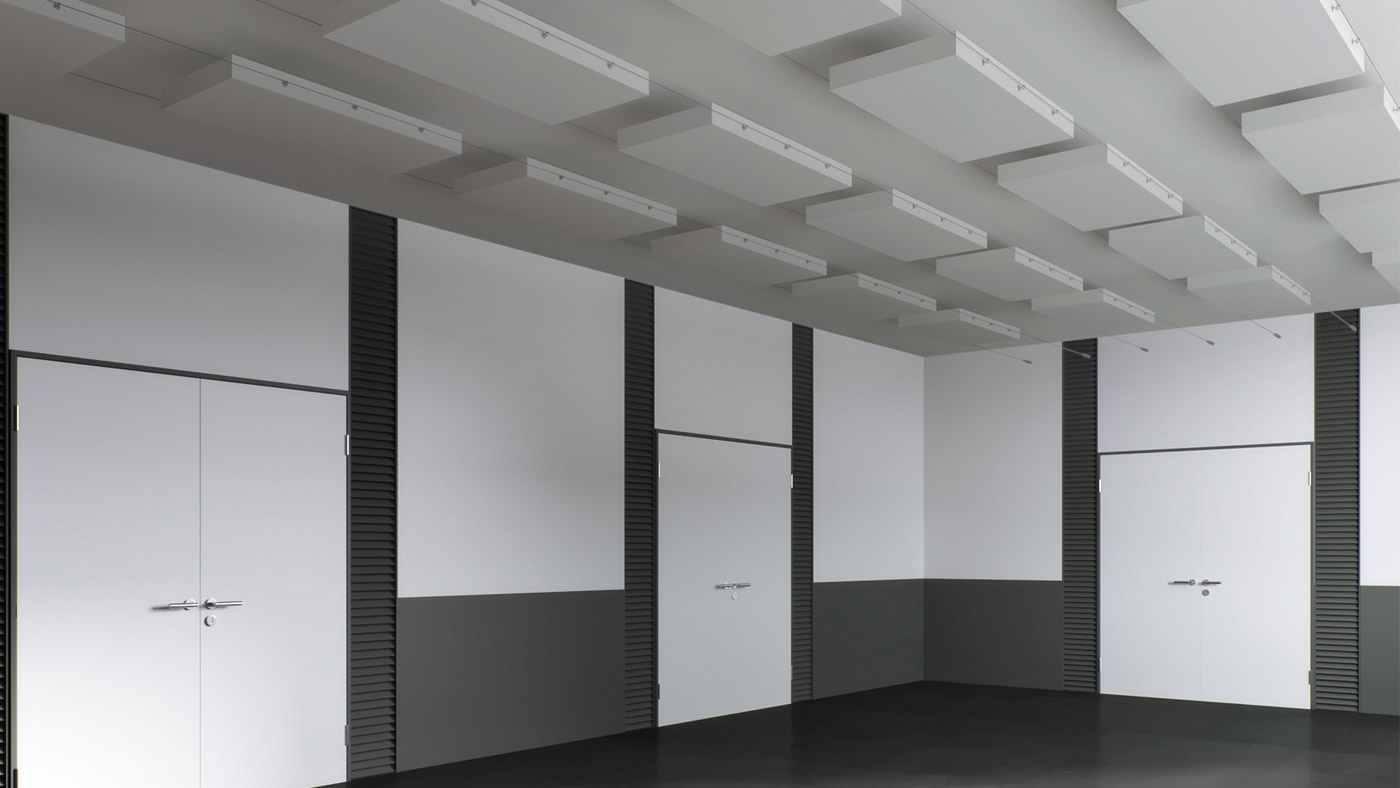 Förutom de klassiska ljudabsorbenterna i form av plattor kan fristående akustikelement som pelare och skiljeväggar, men även akustiksegel, märkbart förbättra akustiken i montern och minska bullret. Detta element återfinns i vår ”Architect Line“.